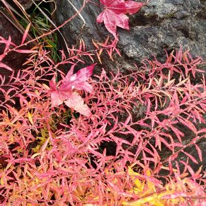 春には真っ白に咲くユキヤナギも 今は紅葉 でも もう花芽がポチポチポチ…と! 濡れた岩には 枝を離れた猩々もみじの葉が ひと葉 ふた葉 ……