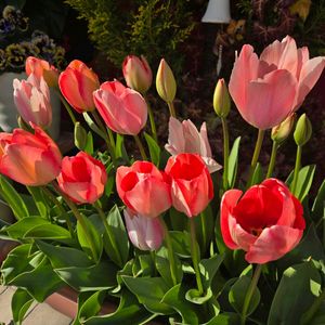 チューリップ ユリ科チューリップ属の多年草。中央アジアから地中海沿岸原産。16世紀に原種がトルコからヨーロッパに持ち込まれ、17世紀にはモザイク模様の花を咲かせる球根が異常な高値で取引されるチューリップ狂時代を迎えたが、数年で終息した。一説には、球根1球が当時の煉瓦職人の15年分の給与に等しい金額で取引されたという。その後オランダで改良が進み、現在の品種群が誕生した。日本に初めて渡来したのは、江戸時代末期の1863年2月、江戸幕府の遣欧使節団がヒヤシンスやスイセンなどとともに持ち帰ったとされる。しかし、この時に渡来した球根はその後の栽培普及にはつながらなかった。実際に栽培が盛んになったのは、明治時代に入ってからである。1917(大正6)年発刊の『西洋草花図譜』ではチューリップが5図描かれており、大正時代中期には高い人気があったことが推測される。日本でのチューリップの球根生産が始まったのは1918(大正7)年、新潟県小合村(現、新潟市)と富山県庄下村(現、砺波市)とされ、安定的にチューリップ球根が供給されるようになってから栽培がさらに一般化していった。新潟県、富山県の県花。 花期は3~5月。極早生咲きから晩生咲きがある。3月下旬から咲く早生種、4月上旬から咲く中生種、4月下旬から咲く晩生種、原種およびその雑種に大きく分けられる。近年では『アイスチューリップ』といって、球根を一度ポットに植え付けて根を成長させた後、そのポットごと冷蔵施設に長期間入れ、その後、花壇に植え付けて真冬の1〜2月に咲かせる技術が普及している。青以外の色が揃っているといわれるほど花色が豊富。花形は一重、八重咲きのほか、尖った花弁が反り返るユリ咲き、花弁の縁が細かく切れ込むフリンジ咲き、花弁がフリル状に波打つパーロット咲きなとがある。最近は、草丈が低く可憐な花をつける原種や原種に近い品種の人気が高まっている。 全草、特に球根に皮膚炎を引き起こすアレルギー性物質のツリパリンA、ツリパリンBを含む。チューリップを長期間大量に触る栽培農家や園芸店では、重篤なアレルギー性皮膚炎が知られ、『チューリップ指』と呼ばれる。 属名Tulipaは、ターバンを意味するアラビア語dulbanのラテン語訳、またはトルコ語のtulbend、ペルシア語のthoulybanにより、その花形に由来する。実際には、1554年、神聖ローマ帝国の大使としてオスマン帝国に赴任した薬草学名のオージェ・ギスラン・ド・ブスベックが、植物のチューリップの名前を問うたところ、現地の人は頭に巻いたターバンの名称を聞かれたと勘違いし、トルコ語でtulbendと答えたことに由来するとされる。チューリップの和名である鬱金香(ウコンコウ)は、花がスパイスのショウガ科ウコンのような香りを連想することから名付けられた。牧野富太郎はこれを誤りとし、牡丹百合(ぼたんゆり)を和名としたが定着しなかった。 出典『育てたい花がたくさん見つかる図鑑1000』『花の事典 970種』『ボタニカルアートで楽しむ花の博物図鑑』『花の園芸事典』