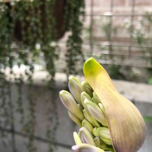 紫君子蘭 建物の壁面に一輪だけ咲いています