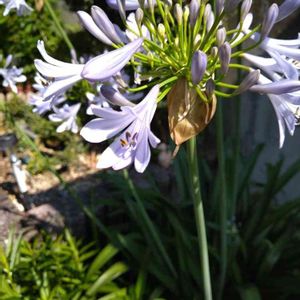 アガパンサスでしょうか? 満開を迎えていました。派手な花ですが、すぐに醜くなってしまうのが残念! 近所の花壇で張り切ってました。