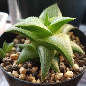 One plant a day. Haworthia tessellata Aliwal North 2021/10 from @abick293 葉の内側の大きな窓に竜の鱗の様な模様が出る竜鱗😏自作のハオルチア用の鉢に植えました。アーチ状の葉はディッキアに通じるところが😏鋸歯もありますね🤔