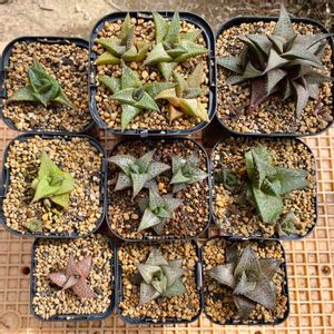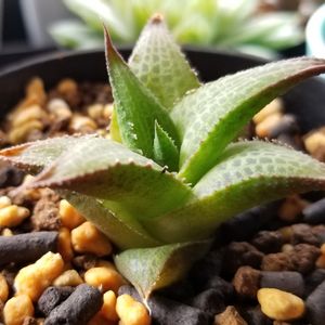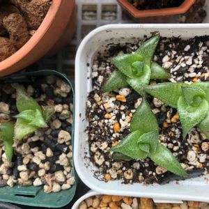 こんばんは。お疲れ様です🌱 週末撮り溜め写真📸ハオルチア竜鱗 夏頃調子を崩して、バラした子たちです。 左ポットはあまりに調子が悪くて土を変え、何とか生き残っている感じ😥 右ポットは綺麗に育ってます✨ピカピカしてる😳 この子達は竜鱗にしては透明感のある明るい色合いでお気に入りなので、消えないように残したい!