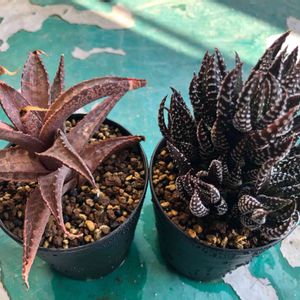 ハオルチア の植え替え。向かって左が竜鱗で、右が名無しの子。冬も寒空の下スパルタ管理だったので、渋い色合い。