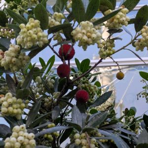 イチゴノキ 🍓がなってるの発見✨ 花も沢山咲き始めたよ〜🤍🤍🤍