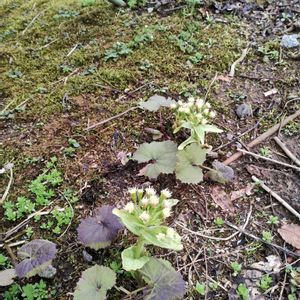 和風庭園のほう、なぜここに❓️が2つ😨 ①庭石の足元 フキノトウに見えるけど え、うち、フキなんてあった?? ②③モミジの根元 チオノドクサっぽいけど え、こんな庭の端っこ側に 植えた覚えないし 草丈もなんか高めだけど 本当に チオノドクサ?? なんか、謎〰️💦💦