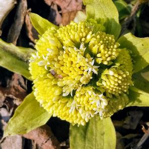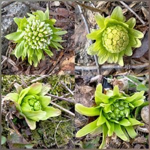 フキノトウの雄花がまるでブーケの様で、とても素敵でした✨💚🎶 実際は両性化なのですが、不稔のため雄花とされているそうです。 フキ キク科 フキ属 雌雄異株 早春の花茎をフキノトウ(蕗の薹)という。 花期は早春の3 - 5月頃 葉が地表に出ないうちに、地下茎から大きな苞をつけた花茎(花穂)が伸び出し、これを「蕗の薹」と呼んでいる。 雄株は高さ10〜25cmになり、黄白色の頭花を多数つける。 頭花は黄色っぽく、すべて両性の筒状花だが、結実しない。 雌花は見つかりませんでした😰