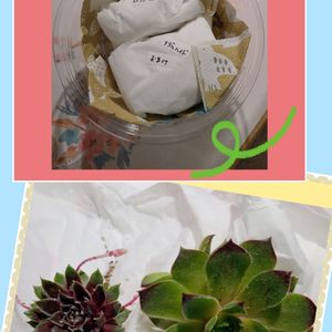 (*´-`*)ノコンバンハー🌟 陽が長くなりましたね🎵 多肉ちゃんを見れる時間が伸びました🥰🌿 わ~ぃ🙌 私もセンペルビウムのバニラシフォン❇️ お迎え出来ました💮 小さいのでまだお子ちゃまはこれからです😌💓 横からランナーが4本出て居ます❇️ きっと来年の今頃は立派に お母さんの横に付いてるでしょうネ🤗 小さい子の成長を見守るのが最近のお気に入りな私です🌟 右隣‥‥💟 オマケに付けてくれたテデルハイドとお名前が付いてる🥰 とっても立派なオマケですね🍀やったぁ〰️❤️ 大切に育てま~す⤴️
