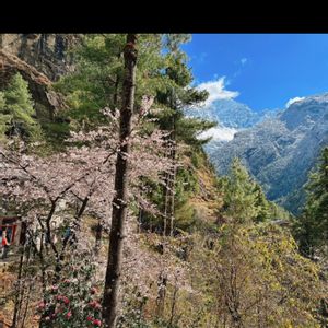 番外編です。 桜の原産国はDNAを調べたらネパールの 山地だったらしいです🤔 "ネパール🇳🇵エベレスト街道"を トレッキング中の娘からのpic🤗 日本との時差は−4時間で、 4/2の現地時間10:30頃です。 これは標高2600m位で咲いているそうです😱😱 日本の桜🌸と同じ時期に咲いていますが、山が主なので桜🌸がアップじゃなくてゴメンなさい🙇 娘夫婦だけでなくガイドとポーターと4人なので元祖お花見を横目で見ながら楽しんだみたいです。