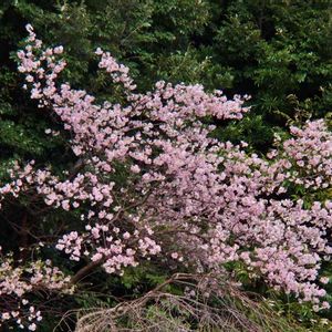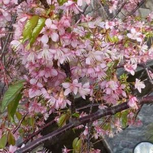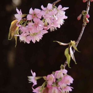 ヒマラヤザクラ 桜の野生種のひとつ。 花は薄い桃色で花弁と花弁の間に隙間があります。 花のついている枝に光沢のある葉をつける為、 全体的に緑色っぽく見えます。 花期 11月〜12月 2020年11月28日撮影