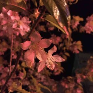 冬桜✨ヒマラヤザクラ🌸 桜の野生種の一つ。ネパールに桜と梅を献上した返礼に日本に贈られて来たそうです。 二酸化炭素などの吸収率が高いので地球温暖化対策の材料の一つとして注目されているとか…。 広島県の義実家に正月帰省した娘から送られてきました。黄色でライトアップされてて赤っぽいようです。