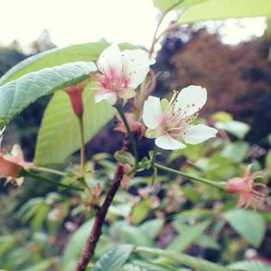 ヒマラヤザクラ 満開のヒマラヤザクラ😊 光沢のある葉をたくさんつけるので 花より目立ってしまってますね😅 控えめな感じで、 ソメイヨシノなどの桜とは また違った味わい深さがあります😊 2020年12月5日撮影