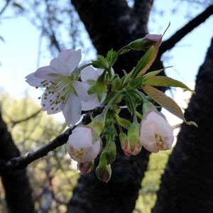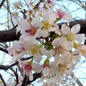 青空にヒマラヤ桜が綺麗です🌸 今年の開花は少し早い と ふくさんに教えて頂き行って来ました花友さんと🍒 メジロが飛び交い🐦 ポカポカ陽気を通り越して暑い位☀️ 何日かかるか分からないけど みどりのまとめを書こうと思います(一年ぶり😅)