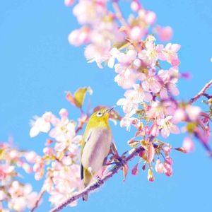 冬に咲くヒマラヤザクラ🌸 ちょうどメジロがやって来て まるでここだけ春みたいな 雰囲気になりました😙💕