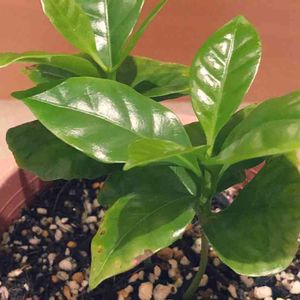 コーヒーノキ、順調に成長していて嬉しい!けど、下の方の葉の先端が茶色くなってきたのはどうしてなのでしょう……?