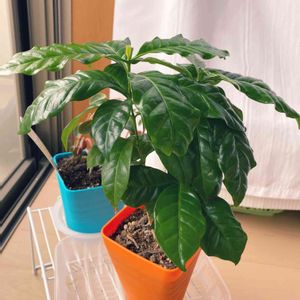 この前投稿した,3本植えのコーヒーノキ.昨日は少し涼しかったので,植え替えました.3鉢になりました.もう少ししたら,バルコニーに出します. 撮影 Sep. 4, 2020