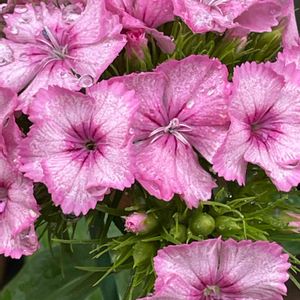 激しい☔の中、ナデシコが ぴんと背筋を伸ばし咲いてました💗 種から長い間、お疲れ様🤗 未だ咲かない他のも 同じ色かなぁ? 楽しみヾ(@⌒ー⌒@)ノ