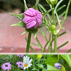 コスモスが 今日にも咲きそうです🌸 オステオスペルマム ・アキラと キララの蕾もどんどん増え続き 💛🤍💜 ニオイバンマツリの蕾が付き 始めました💜 🏷金曜日の蕾たち