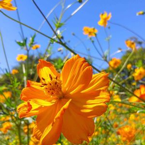 🌻✨コスモス✨🌻 今日のお花🌸 キバナコスモス❇️青空✨にとっても映えます🧡❇️🧡❇️🧡 気持ちいい~♪ヽ(´▽`)/🎶