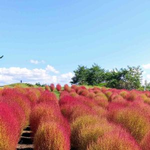 💚💛❤️コキア❤️💛💚 緑色🌳から真紅🍁へ変遷の途中(´- `*)✨ あ~✴️秋だなぁ~✴️🍁✴️