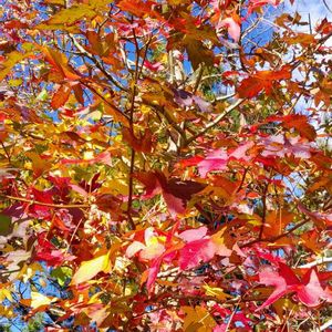 🍁✨モミジバフウ✨🍁 青い空✨☀️に色とりどりのモミジバフウ🍁❇️🍁❇️🍁 秋🍂🌾🍁たけなわです♪ヽ(´▽`)/❇️