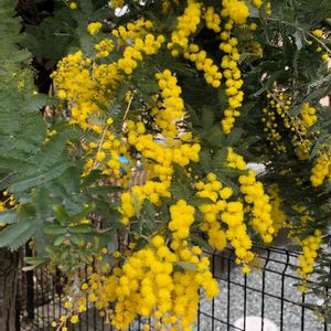#ミモザ もう咲き始めました。 去年バッサリ切ったので今年は落ち着いています。 いつ見ても金平糖のような小さな黄色いつぶつぶに愛着が湧きます。