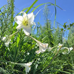 おはようございます☀ 清楚な白百合は 青空が似合う 心も晴れ晴れ 清々しい〜心持ち 素敵な週末を過ごしたいですね😊🌿 テッポウユリ🌱
