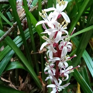 おはようございます♪ ♡今日のお花♡ 💕吉祥草(キチジョウソウ)💕 キジカクシ科キチジョウソウ属 常緑多年草 開花期10〜12月 果期2月 葉の間から10輪程度の小花が下から順に咲きます。 上部には雄しべのみの雄花が付き、下部には雌しべを持った両性花が付きます。 両性花‥白い6本の雄しべと中央の紅紫色の1本の雌しべが見れます ①③神代植物公園 ②板橋赤塚植物園