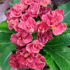 プリムラ・ポリアンサのバラ咲きのピンクの花 2023-02-15