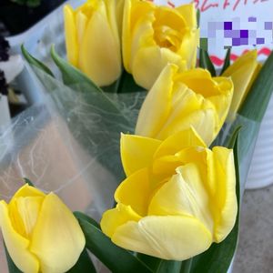 お出かけシリーズ🚙♪ ①②③ 直売所「いなほてらす」にて今朝撮りです😊 あまりんいちごを買いに行ったついでにお花売り場を覗くと… 黄色いチューリップさん可愛い〜😍 ふと見ると「香るチューリップ・シークレットパフューム」と書かれたポップが。 ふーんと思って嗅いでみると、濃い〜香り😳💕 あまりの良い香りに、鼻ムズムズしながらも、二度も嗅いでしまった😅 ピンクのプリムラ・ポリアンサさんも、三色のワスレナグサさんも、可愛かったです😊🩷🤍💙 ④⑤ お昼前から主人の娘さんと初めて会いました😊 神奈川から遠路はるばる🚙、長男くんも連れてきてくれて、みんなでココスでランチ🍝🍴 長男くんは、横浜の一流ホテルのレストランに昨年就職、一流シェフを目指して、精力的に頑張っているそうです❣️🧑🍳 娘さんは、とてもフレンドリーで話しやすく、やっぱりひろちゃんのとこに来てよかったーと思いました😊 楽ちゃんも、二人に会えて大喜びでした🐶💕 別れ際にみんなでパチリ🤳✨ 主人からはあまりんいちご、私からはチョコの詰め合わせ、喜んでもらえてよかったです💖 娘さんからは、横浜銘菓の「半月」を頂きました😊 とても美味しかったんですが、picに加えるの忘れました😅 楽しく有意義で貴重な時間を過ごせてよかったです🤗💞