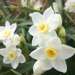今春の築山は白い房咲スイセン「タリア」を中心としたホワイトガーデン風になりました。