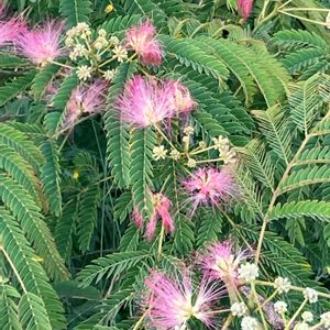 ねむの木 川べり散歩 花の色が鮮やかピンク 昨日と今日は梅雨の中休みで湿度が低い晴れ☀️ですね。私のイメージでねむの木が咲くと梅雨明けまであと少しと感じます。