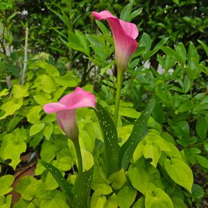 ピンクのカラー🩷咲きました イカリソウからの侵略にも負けず頑張りました😃