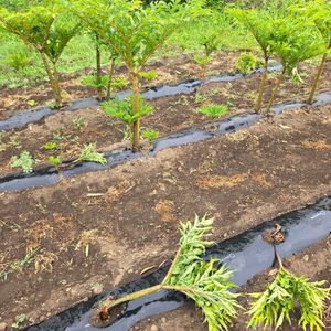 私の蒟蒻畑😢 暑さのせいでしょうか? 根元から折れてます😵 😨ショック