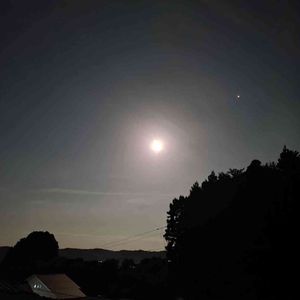 昨日はスタージャンムーンって8月の満月🌕だったよってお友達に教えてもらったよ 昨日は雨☔で見れなかったので 今日の撮影 まん丸で綺麗です😃 下の丸い緑はお隣さんのキンモクセイです