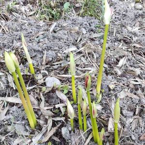 我が家の彼岸花 もこもこ出て来ました😃 あかと白があります 咲くのが楽しみ😊