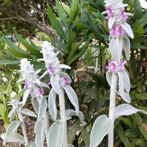 お友達から頂きました ラムズイヤー 咲いてます😃 葉っぱのもこもこ感が大好き😊