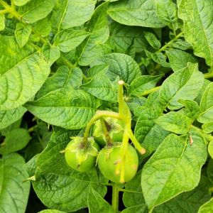 じゃがいもの花の実😃 ミニトマトかと思ったら・・・ じゃがいもの花を放っておくと実になるのですね😁 当然といえば当然 知りませんでした😅 これは食べれるのかな?
