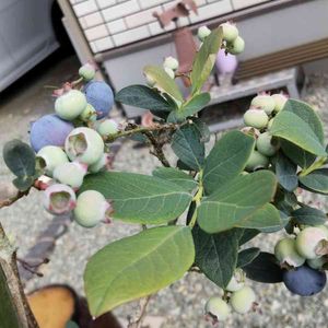 我が家の鉢植えブルーベリー😃 色づいてきました👌 美味しそう😋