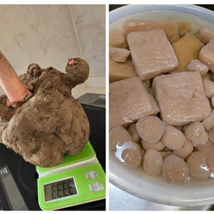 こんなに花芽が伸びてました😅 2.5キロありました この大きさのがまだ2個あります😃 作らなきゃ 今季9回目の手作り蒟蒻 お裾分けしたいと思います☺ 作るのは大変だけど美味しいですよね😃