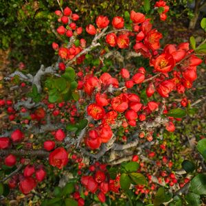 我が家のボケ 咲き始めました 真っ赤でかわいーです😃