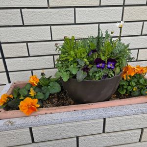 やーと植え替えしました😃 玄関のわき可愛くなりましたよ✨