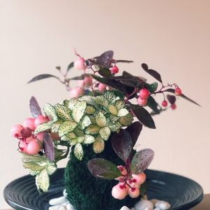 お正月苔玉シリーズ ビッグベリー(ゴーチェリア) カルーナ(八重咲き) ミニハボタン カルーナの小さな花が八重になってて可愛いいんです 簡単苔玉の作り方、みどりのまとめにupしてます。よかったら…