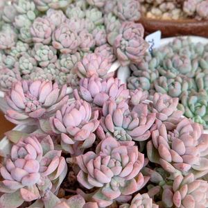 プロリフェラ丼 置き場所で色が違い、どれも可愛いです❣️ 挿し芽でも葉挿しでも増えて初心者には嬉しい、大好きな子達です(*´˘`*)♥