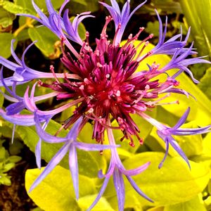 💠 今日のお花・ヤグルマギク 💠 宿根ヤグルマギク 『セントーレア ゴールドブリオン』 🌱モンタナの黄金葉種で、 ブルーの花とゴールドの葉の コントラストが鮮やかです✨ 柔らかな綿毛に覆われた ライムゴールドの葉が 明るい色合いで、花期以外でも楽しめます。 (2024.6/1 撮影)