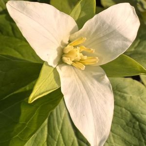 💠今日のお花・オオバナノエンレイソウ💠 朝日を浴びて咲く花…✨ *北海道大学の校章に デザインされているお花です🤍💚 (2025.5/17 撮影)