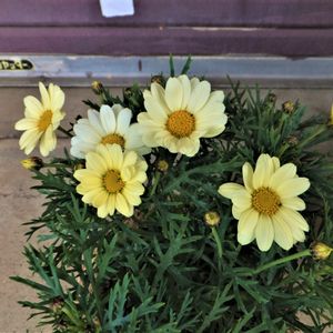 朝の通勤途中。 薄黄色の「マーガレット」が咲いていました。 パチリ
