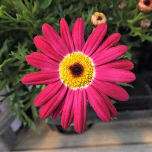 お出かけ先のお花やさん。 強烈な色彩の「マーガレット」が綺麗に咲いていました。 パチリ