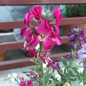 お散歩途中。なぜか清々しく感じる「ストック」。 パチリ Netで調べたところ、一重の「ストック」のようです。 市販されている殆どは八重の「ストック」で、種ができず、その分、開花時期が長いのだそうです。 一重の「ストック」は殆ど市販されていないので、種から育てられた可能性が高いようです。😄