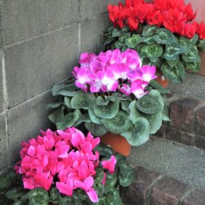 お散歩途中。 玄関の階段に綺麗な「シクラメン」が並んでいました。 パチリ