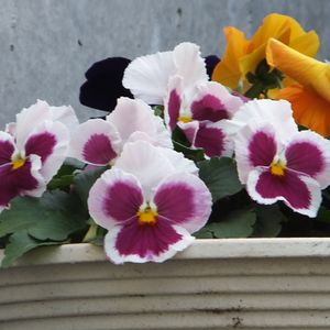 お出かけ先のお花屋さん。 かわいい「ビオラ」が。 パチリ Netで調べたところ「マリアの微笑み」として市販しているビオラにかなり似ていました。😊 ・・・・???🤔